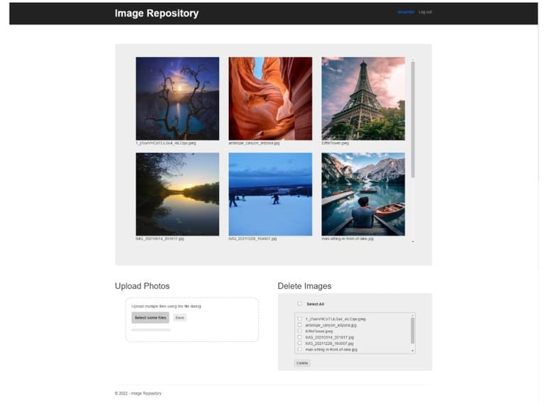 The Image Repository is a secure and user-friendly solution for storing and managing images. With a simple account setup and login process, you can effortlessly upload, organize, and delete images as needed.